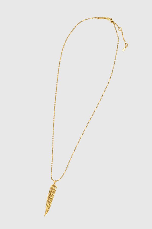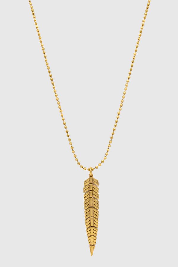 A delicate statement-maker, this necklace is designed with a gold-tone, beaded chain that’s hung with a feather pendant for a touch of boho charm.