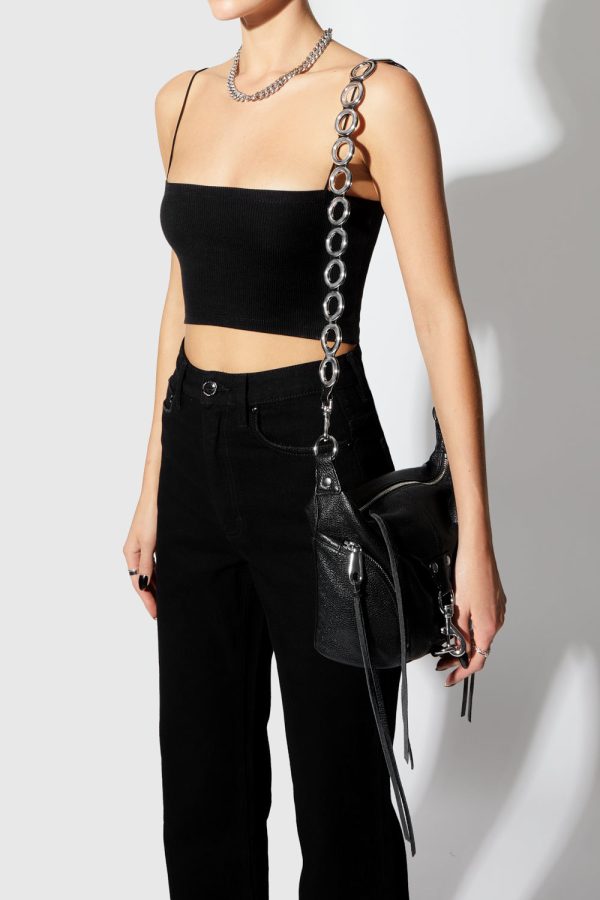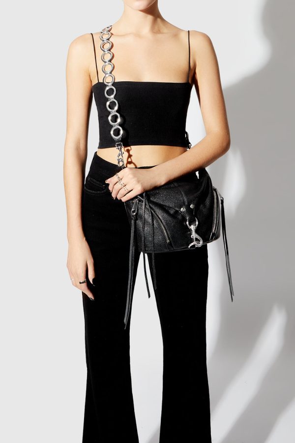 Rebecca Minkoff Guitar Strap With Eyelets Black/silver | Women Bag Straps