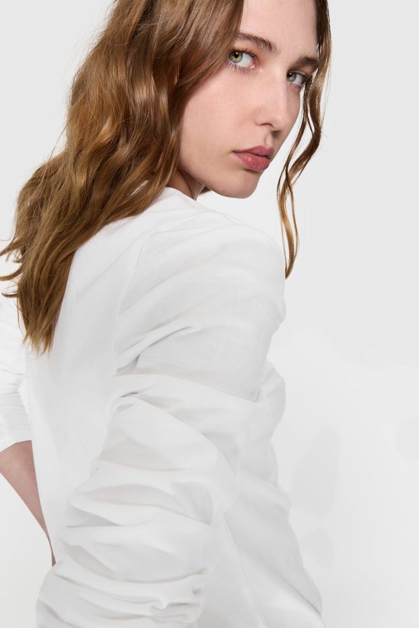The Janine Long Sleeve is a pleated long sleeve t-shirt crafted from 100% cotton jersey. Perfect for those who appreciate refined style.
