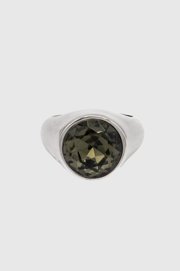 Slip on, stand out. This stunner, signet style ring is inlaid with a striking graphite crystal for an eye-catching effect.