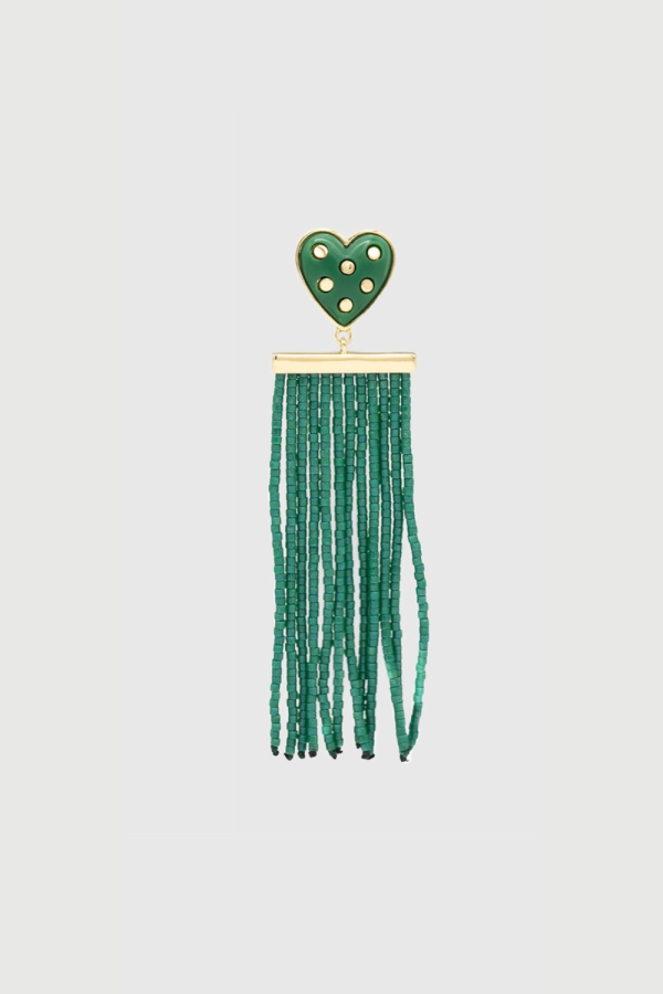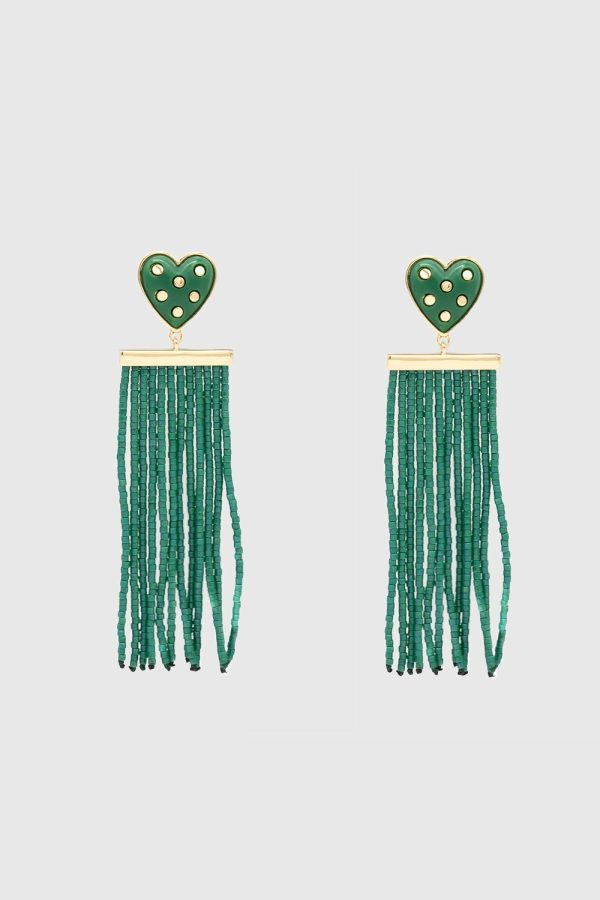 Rebecca Minkoff Studded Heart Fringe Seed Bead Earrings | Women Jewelry