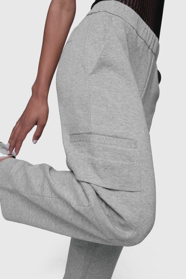 The Viv Cargo Pant in heather grey combines effortless chic with practical utility. It has functional front pockets and is cut from sleek scuba fabric for streamlined design and comfort.
